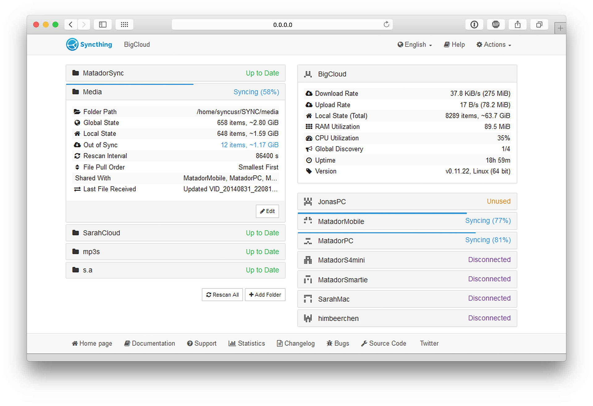 بالإضافة لما سبق، أستخدم Syncthing لرفع ملفات الميديا تلقائيًا عند إضافتها لجهازي إلى لوح الراسبيري، حيث أُشغّل نسخة من تطبيق Emby، وهكذا في غضون دقائق تصبح ملفات الميديا الجديدة متاحة على جميع الأجهزة التي تملك وصولًا لتطبيق Emby دون تكرار النسخ على كل جهاز.